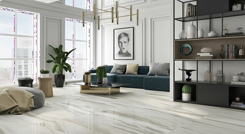 Gạch lát nền là yếu tố lớn chi phối cảm nhận không gian. Thay vì sử dụng loại gạch nhỏ truyền thống, bạn nên chọn các loại gạch khổ lớn như 60x60, 80x80 hoặc 75x150 cm. Việc giảm bớt đường ron gạch giúp tạo cảm giác liền mạch, rộng rãi, ít chia cắt — đặc biệt hiệu quả với các căn hộ có diện tích khiêm tốn.