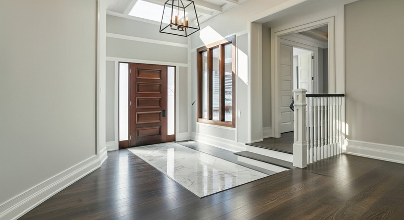Việc nâng nền sảnh 3–5cm giúp phân tách rõ ràng khu vực trong - ngoài nhà. Đây là nơi bạn có thể tháo giày dép, để ô ướt hoặc túi xách đi làm trước khi bước vào không gian sinh hoạt chung. Nó hoạt động như một lớp "bộ lọc" giữ bụi bẩn, bùn đất hay nước mưa ở lại bên ngoài.