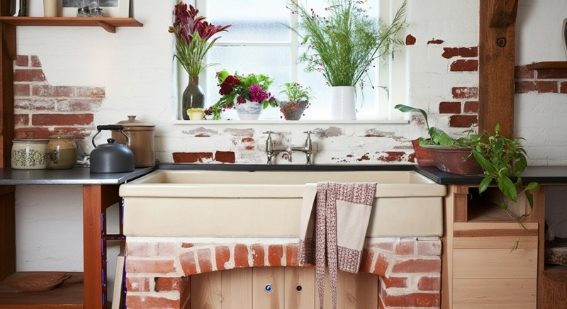 Chậu rửa bằng gạch từng là lựa chọn phổ biến thời bao cấp, nhưng hiện nay đã được “hồi sinh” với nhiều biến tấu hiện đại. Bạn có thể ốp gạch men họa tiết, gạch xi măng, hoặc thậm chí là gạch mosaic để tạo điểm nhấn cho phòng tắm hoặc khu rửa bát.